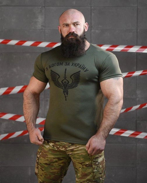 Тактична футболка потовідвідна з Богом за Україну 2XL олива (16721)