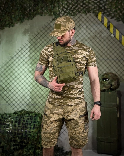 Тактичний літній комплект 4 в 1 шорти, бейсболка, футболка, тактична сумка Combat Force Піксель XL