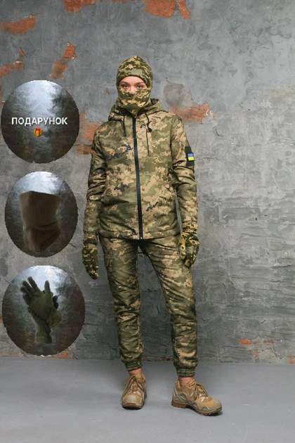 Жіночий теплий костюм "Terra Hot" зелений піксель/XL + бафф та рукавички хакі У ПОДАРУНОК