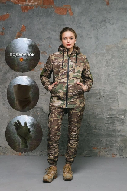 Жіночий теплий костюм "Terra Hot" мультикам/XL + бафф та рукавички хакі У ПОДАРУНОК