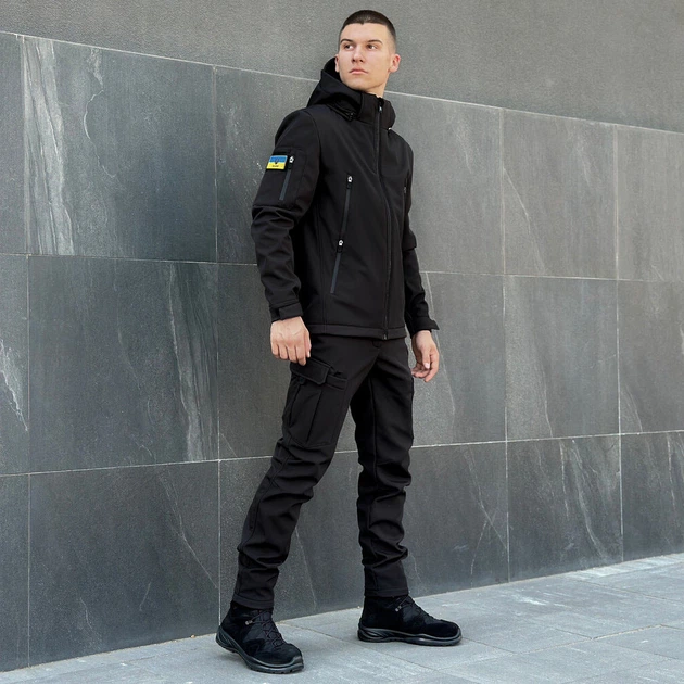 Тактична форма Pobedov Куртка утеплена синтепухом + Штани Softshell чорна розмір M
