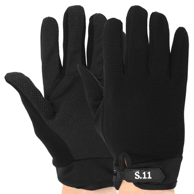 Рукавички тактичні із закритими пальцями на липучці розмір M Поліестер S.11 чорний BC-0527