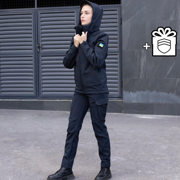 Демісезонна жіноча Форма Pobedov Куртка + Штани Soft Shell + подарунок шеврон синій розмір XL