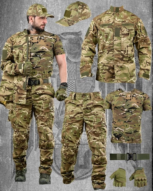 Тактичний літній костюм Dogma 6в1 Мультикам з поясом, рукавичками, футболкою та бейсболкою XL