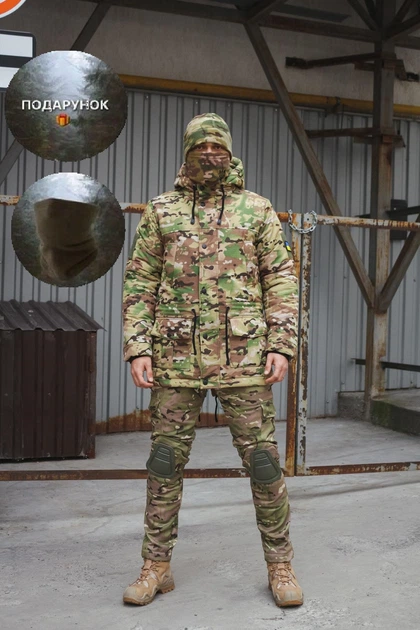 Чоловічий комплект зимовий зносостійкий теплий: Парка зимова мультикам + теплі штани Protect мультикам /L Бафф хакі у ПОДАРУ