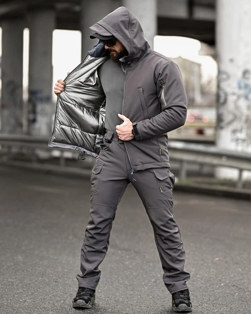 Зимовий тактичний костюм 762 Grey утеплений Softshell вітро- та вологозахисний Slimtex Omni-Heat XL