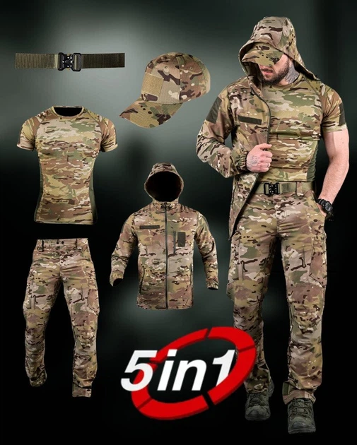 Літній тактичний еластичний костюм Hunger 5в1 Мультикам з футболкою, бейсболкою, поясом XL