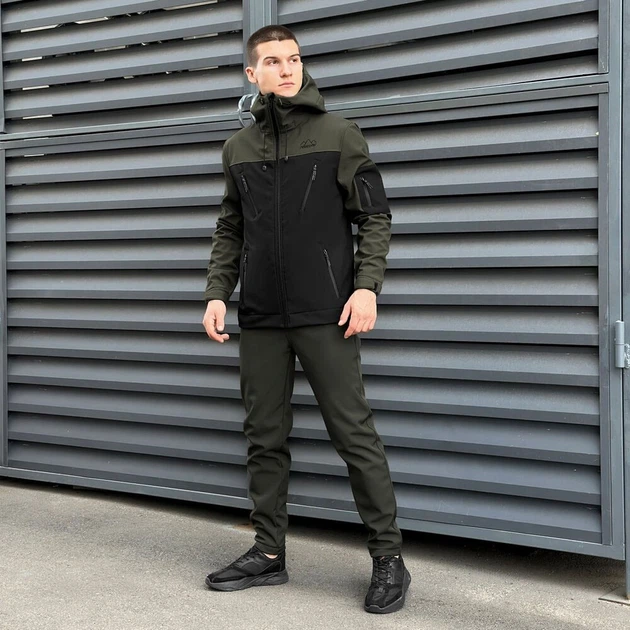 Костюм Pobedov Softshell Куртка з капюшоном + Штани хакі з чорним розмір XL