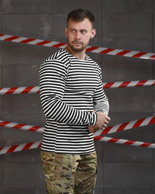 Тельняшка біло-синя смужка бавовна 95 кулір чоловіча футболка смуга XXL