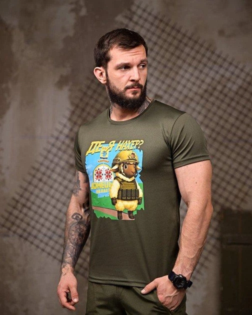 Тактична чоловіча футболка з принтом 2XL олива (93056)