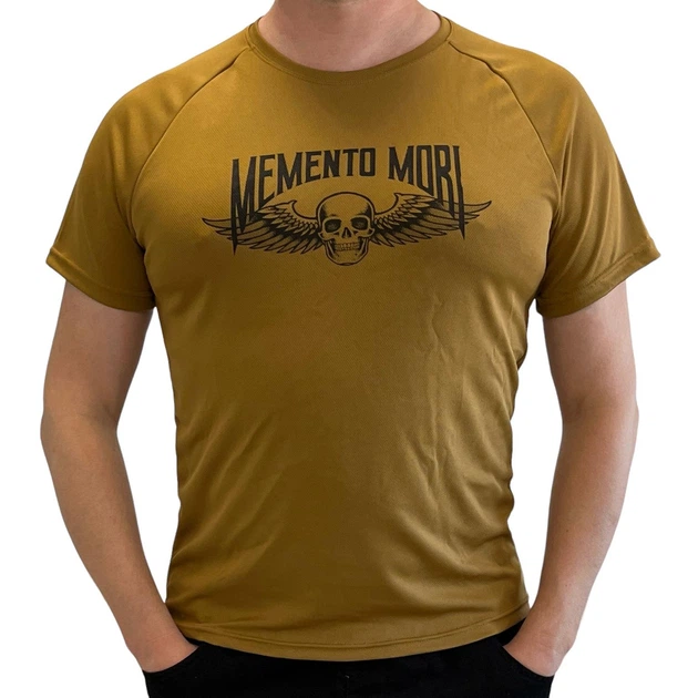 Тактична чоловіча футболка однотонна потовідвідна з принтом "Momento Mori" CoolPass Antistatic XL Койот