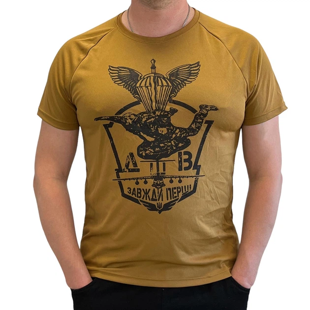 Тактична чоловіча футболка військова потовідвідна однотонна з принтом "ДШВ" CoolPass Antistatic XL Койот