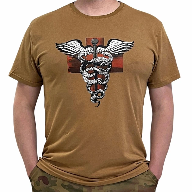 Тактична чоловіча футболка бавовняна однотонна повсякденна з принтом "Військовий медик" XL Койот