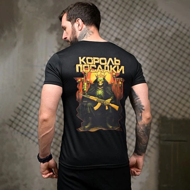 Потовідвідна Футболка Coolmax з принтом КОРОЛЬ ПОСАДКИ розмір 2XL чорна