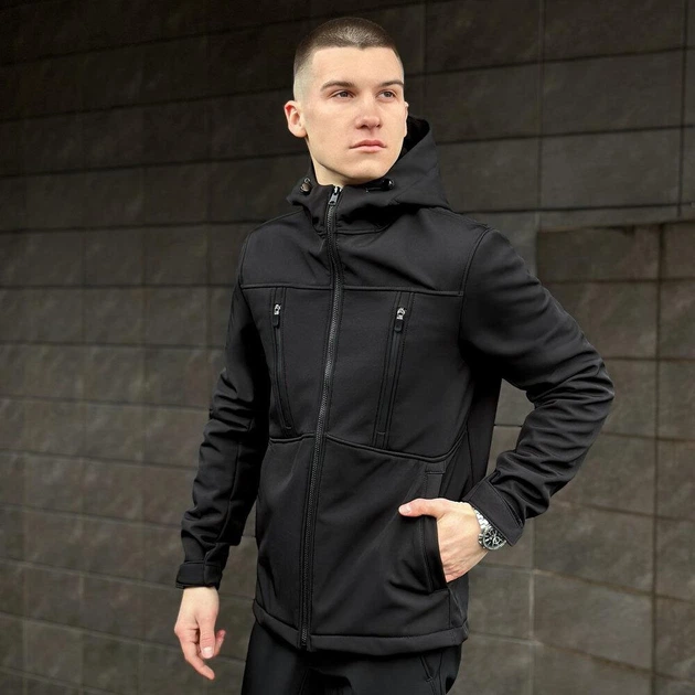 Костюм Pobedov Softshell Куртка з капюшоном + Штани на резинці чорний розмір S