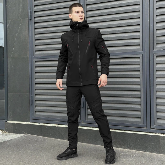 Костюм Pobedov Softshell на флісі Куртка з капюшоном + Штани чорний розмір M