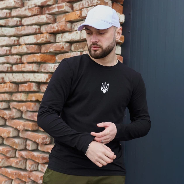 Чоловічий бавовняний Лонгслів "Pulse" з Тризубом / Легка Футболка із довгим рукавом чорна розмір 2XL
