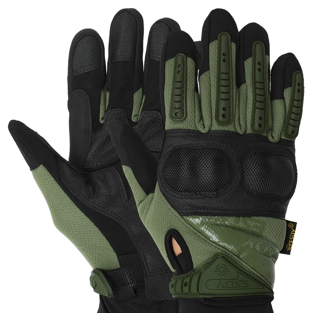 Рукавички тактичні з посиленим протектором на липучці розмір XL Поліестер Поліуретан оливковий BC-4923