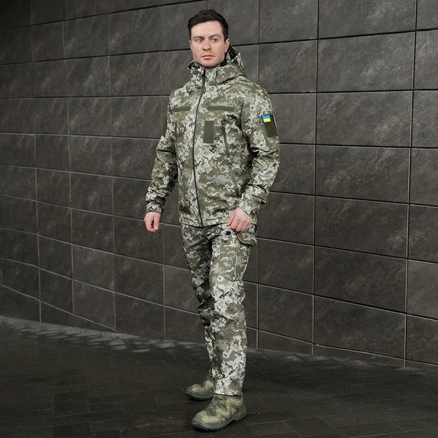 Тактична форма Pobedov Куртка утеплена синтепухом + Штани Softshell піксель розмір M