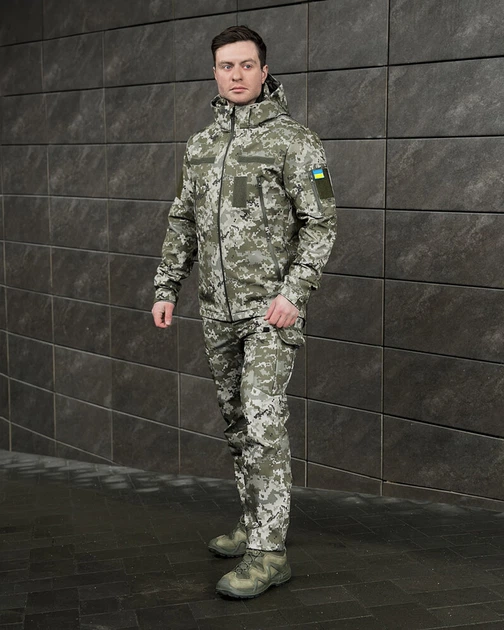Форма Pobedov Куртка Motive B2 з капюшоном та Штани-Карго Static + ПОДАРУНОК Шеврон прапор України піксель розмір 2XL
