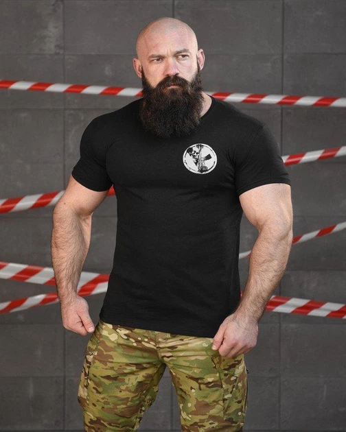 Тактична бавовняна футболка з принтом 2XL чорна (91179)