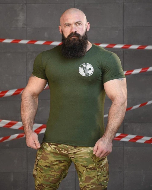 Тактична футболка потовідвідна з принтом 2XL олива (85502)