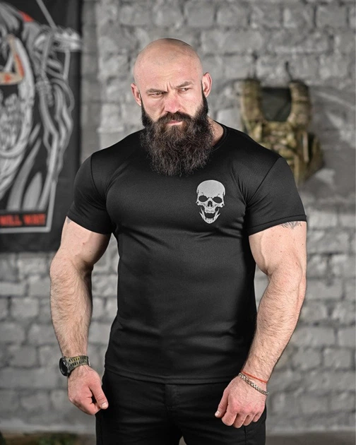 Тактична футболка потовідвідна з принтом 2XL чорна (91183)