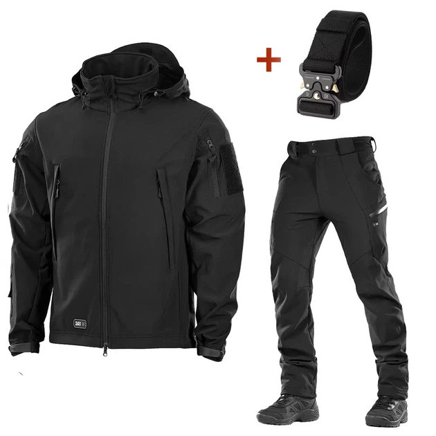 Костюм на флісі M-Tac SoftShell Куртка та Штани + Подарунок ремінь Кобра чорний розмір S