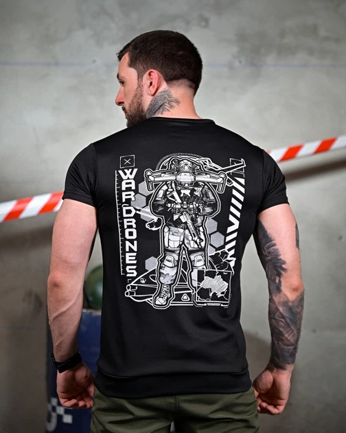 Тактична футболка War Drones Black з матеріалу Coolmax потовідвідна XXL