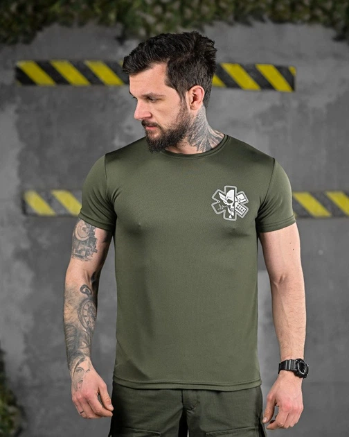 Тактична футболка Paramedic Олива з матеріалом Coolmax потовідвідна шовкографія XXL