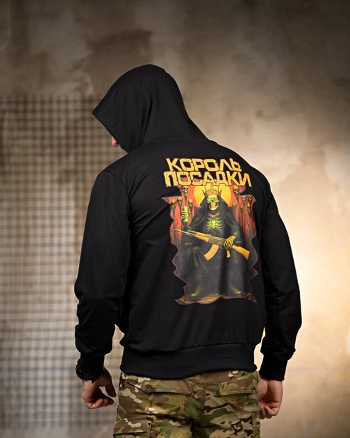 Худі мілітарі Black, посадка королівська, двонитка з принтом DTF, якісний матеріал XXL