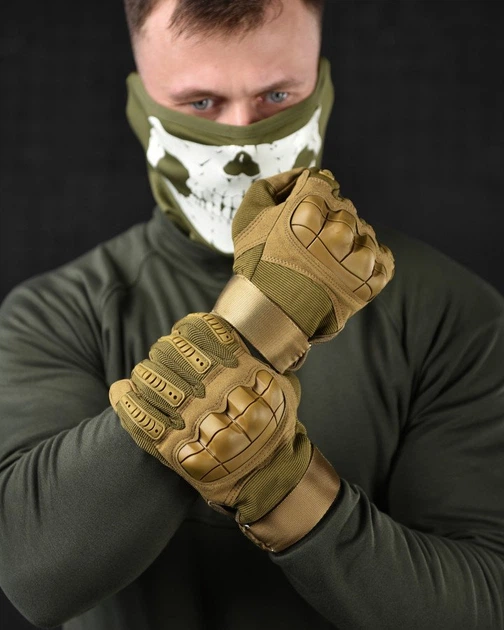 Тактичні штурмові повнопалі рукавички з карбоновими накладками для полювання та страйкболу XL
