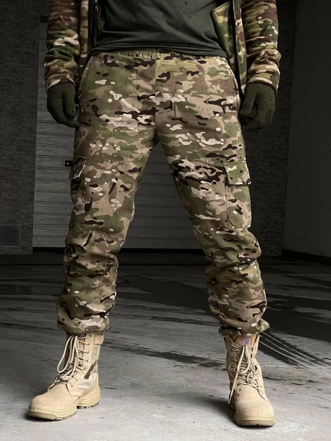 Чоловічі зимові штани саржа на флісі / Утеплені брюки з манжетами на хлястиках мультикам розмір 5XL