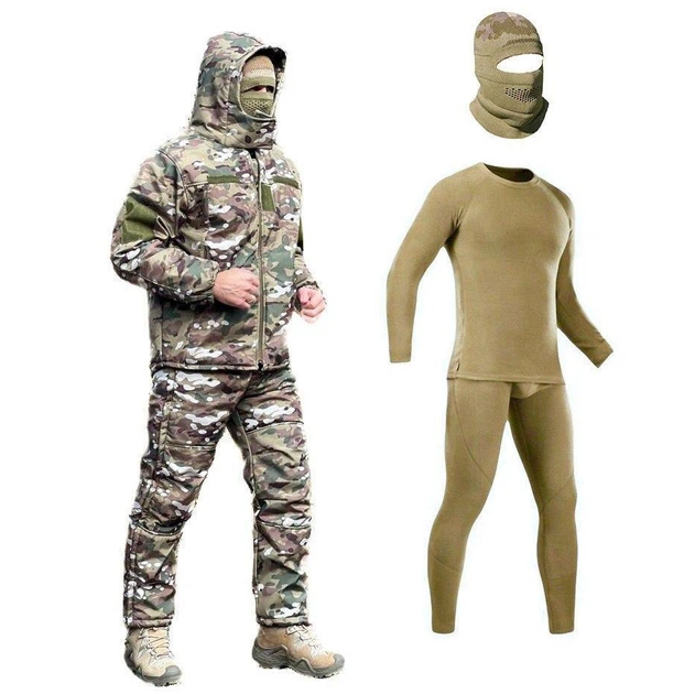Чоловічий зимовий Комплект Бушлат + Штани + Термобілизна + Балаклава / Польова форма 4в1 мультикам розмір M