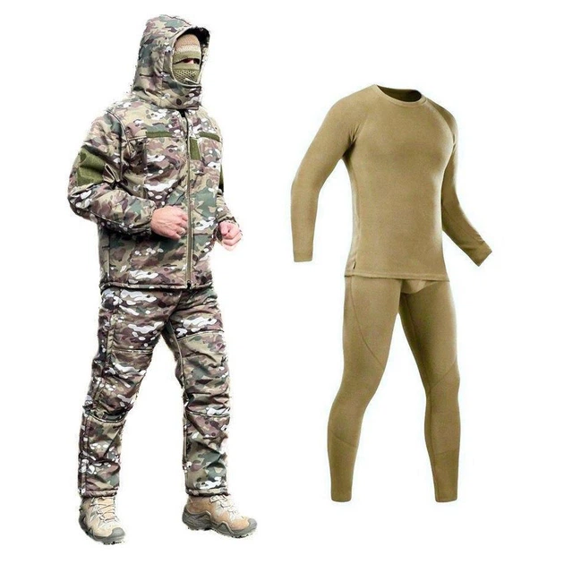 Чоловічий зимовий Комплект Бушлат + Штани + Термобілизна / Польова форма 3в1 мультикам розмір S