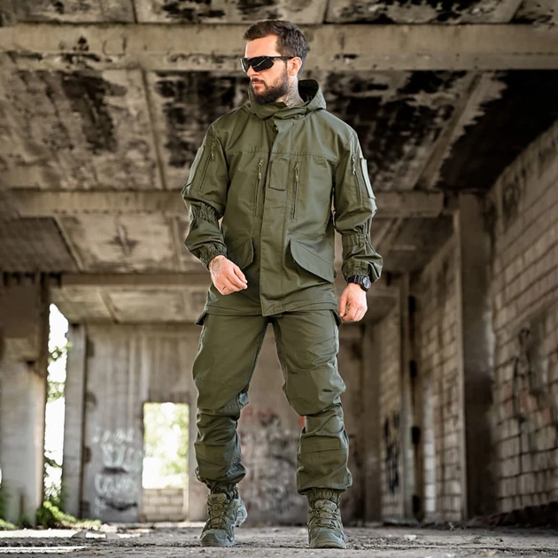 Тактична форма Горка Куртка з капюшоном + Штани з підтяжками олива розмір S