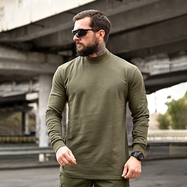 Чоловічий трикотажний Гольф з начісом / Щільна Водолазка на байці олива розмір XL
