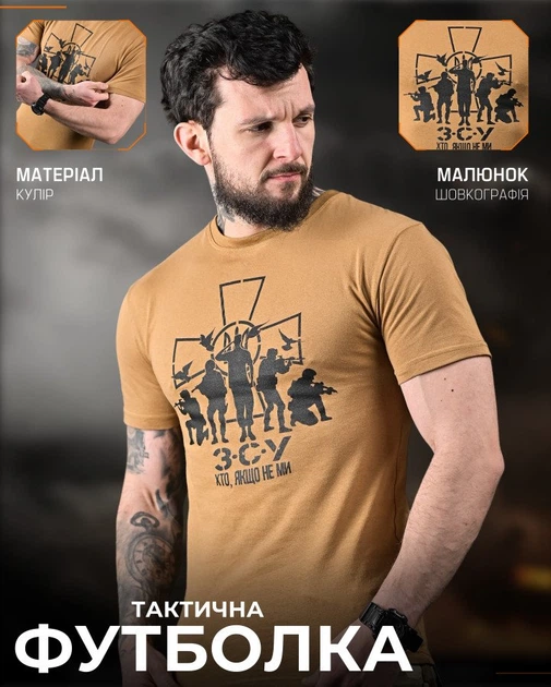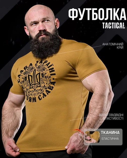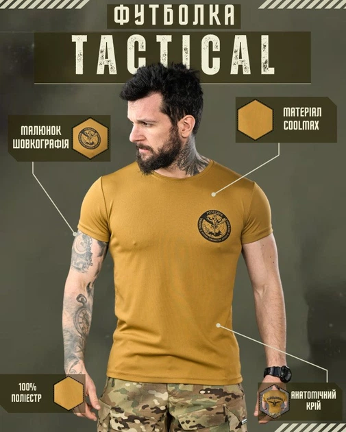 Тактична вологовідвідна футболка Coolmax койот з шовкографією Coyote XXL