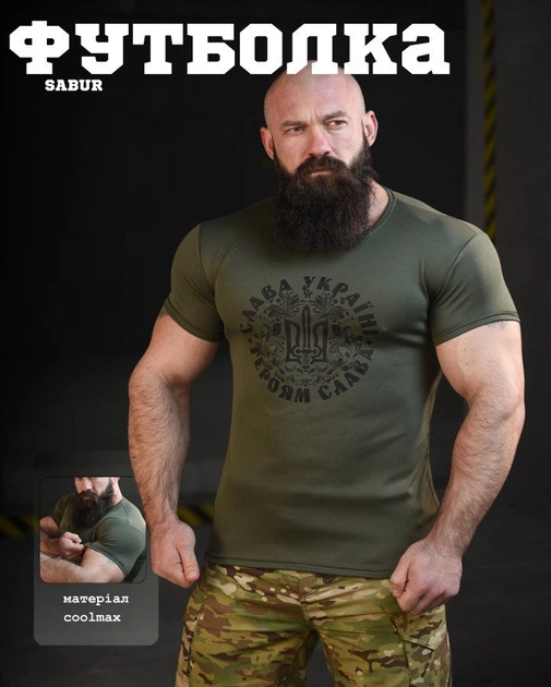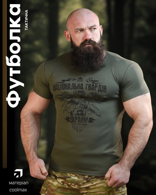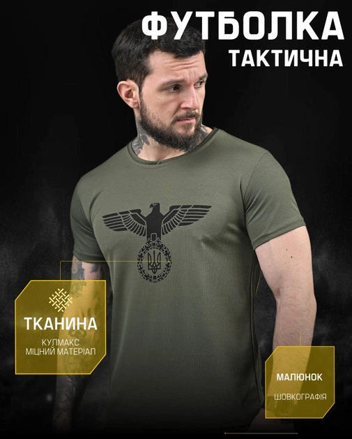 Тактична футболка потовідвідна Coolmax з шовкографією Olive XXL