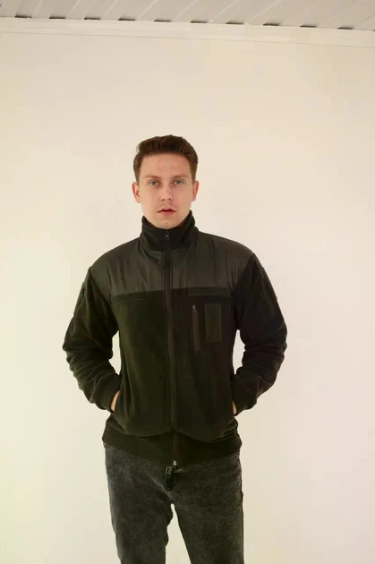 Кофта на блискавці флісова, БАТАЛ, (фліс/плащівка), ОЛИВА, 4XL