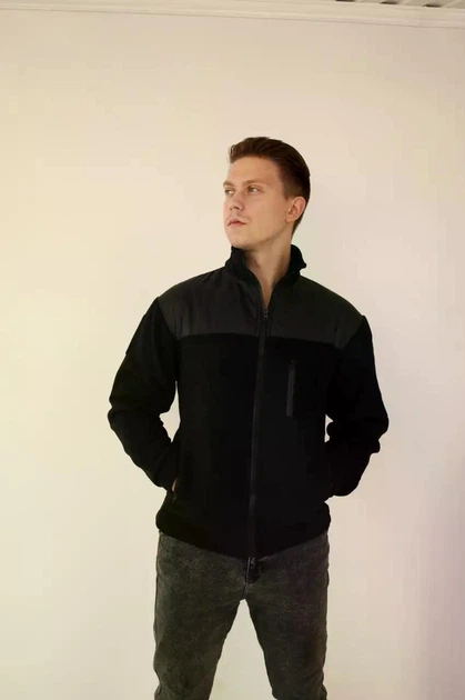 Кофта на блискавці флісова, БАТАЛ, (фліс/плащівка),ЧОРНИЙ, 4XL