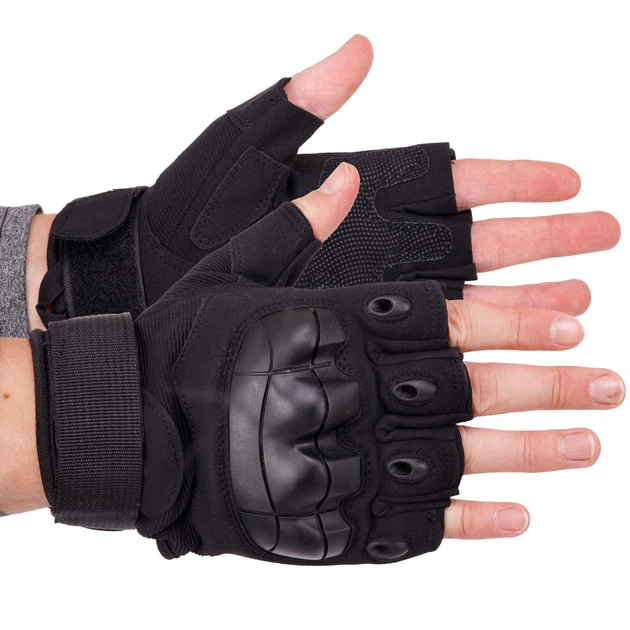 Перчатки тактичні з відкритими пальцями (PL, пластик, шкірозамінник, р-р M, Чорний) (BC-8805ЧорнийM)