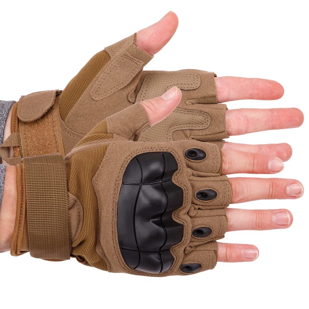 Перчатки тактичні з відкритими пальцями (PL, пластик, шкірозамінник, р-р L, Хакі) (BC-8805ХакіL)