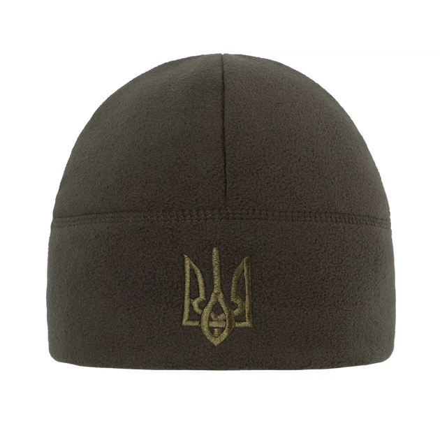Шапка флісова Без Відвороту З Тризубом Темна олива, L