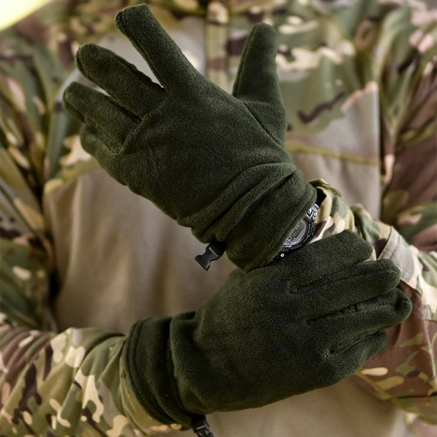 Міцні флісові Рукавиці повнопалі олива розмір універсальний