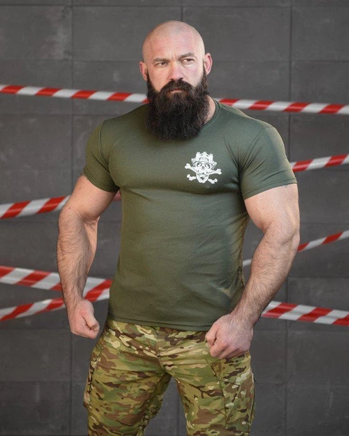 Тактична футболка потоотводящая з принтом XL олива (86678)