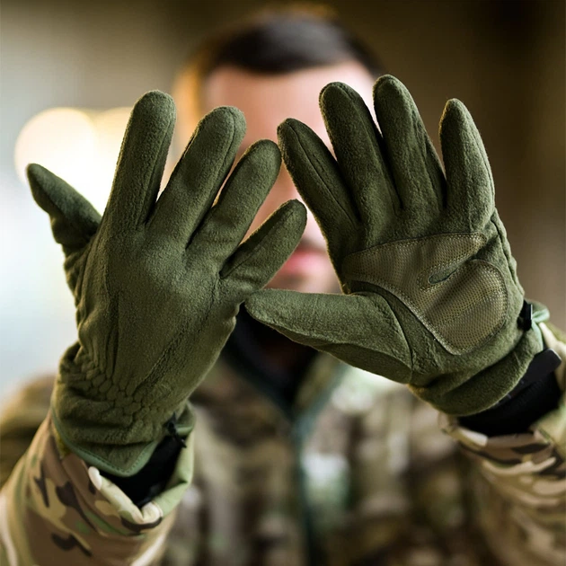 Міцні флісові Рукавиці повнопалі олива розмір універсальний