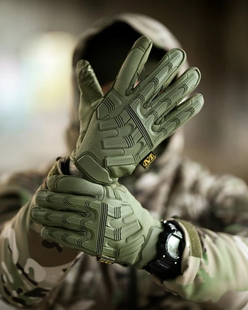 Тактичні рукавички Mechanix M-Pact Олива з захистом Poron XRD та посиленням Armotex TPR Velcro XL