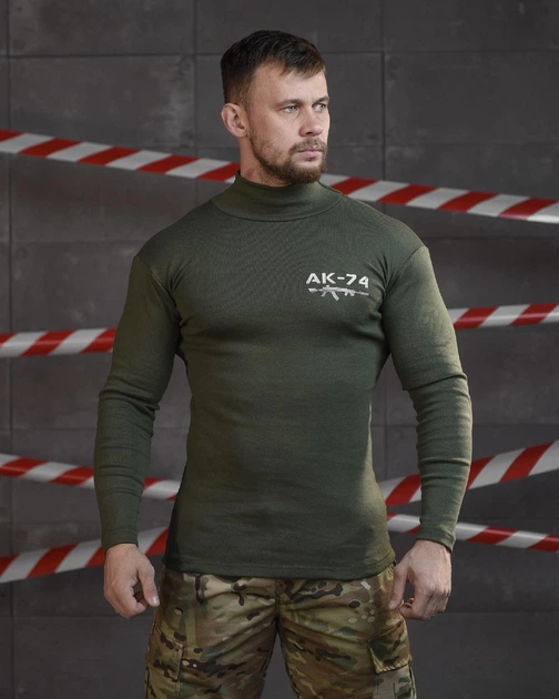 Армійський чоловічий лонгслів гольф AK-47 XL олива (90212)