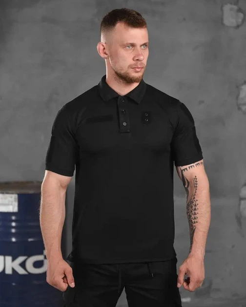 Поло з липучками під шеврони чорне розмір 2XL